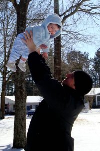 Today’s picture of daddy Lee holding son, David Lee, is a wonderful example of what I’ve written about. You and I are like DLK3 and Lee is a picture of our Father God. We are eternally safe in his arms. So, be of good cheer no matter what you’re going through today; because your Father God is holding you.