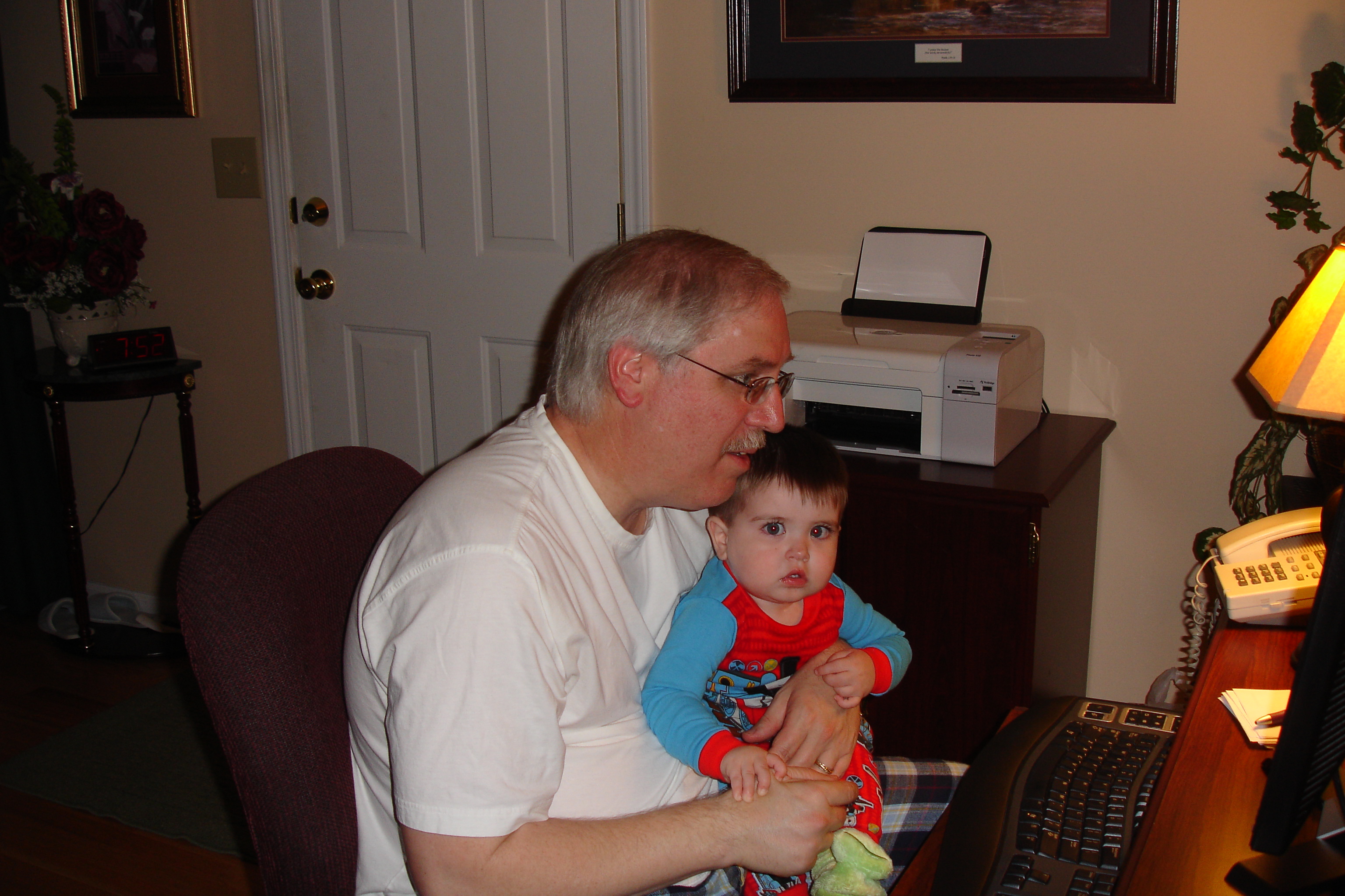 Thanksgiving at my parents: David Lee teaching me the joys of watching "Thomas the Train" videos on the computer.