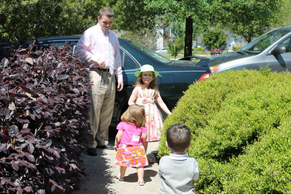 In the picture is my son (Lee) and three of my grandchildren: (r-l) his niece Trinity, and his daughter Ella and son, David Lee. They had just left church and were meeting us at our home for Sunday lunch.