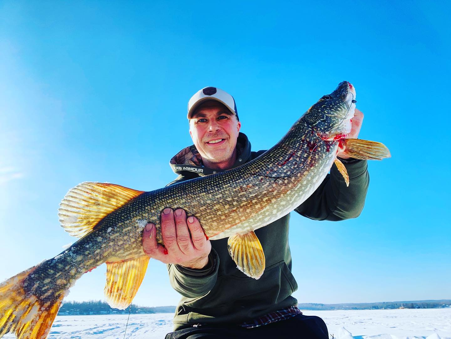 Come winter, virtually nothing stops in the great white north–even fishing. Here’s Travis Hovde, pastor of Eagle’s Wings in Minot, showing off a nice northern pike pulled out of Lake Metigoshe while ice fishing. Life in the amazing North Central Region! Way to go Pastor Travis!