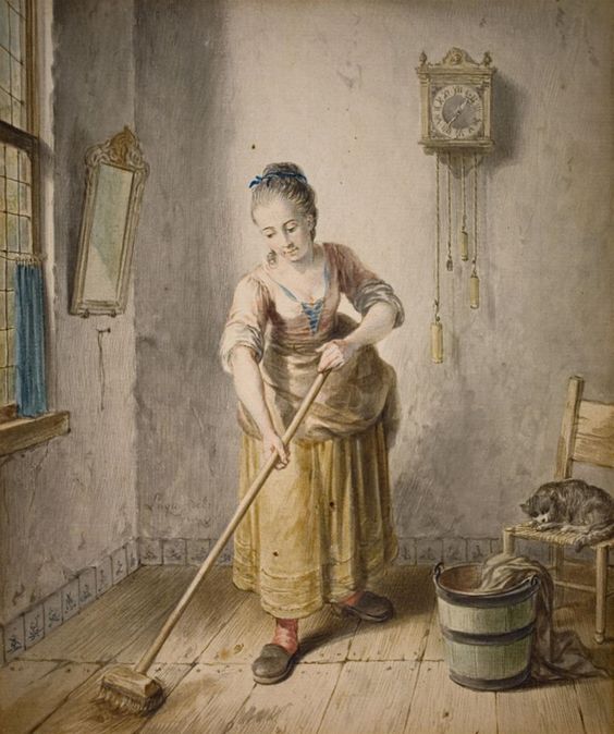 YOUNG WOMAN CLEANING THE FLOOR – Willem Joseph Laquy