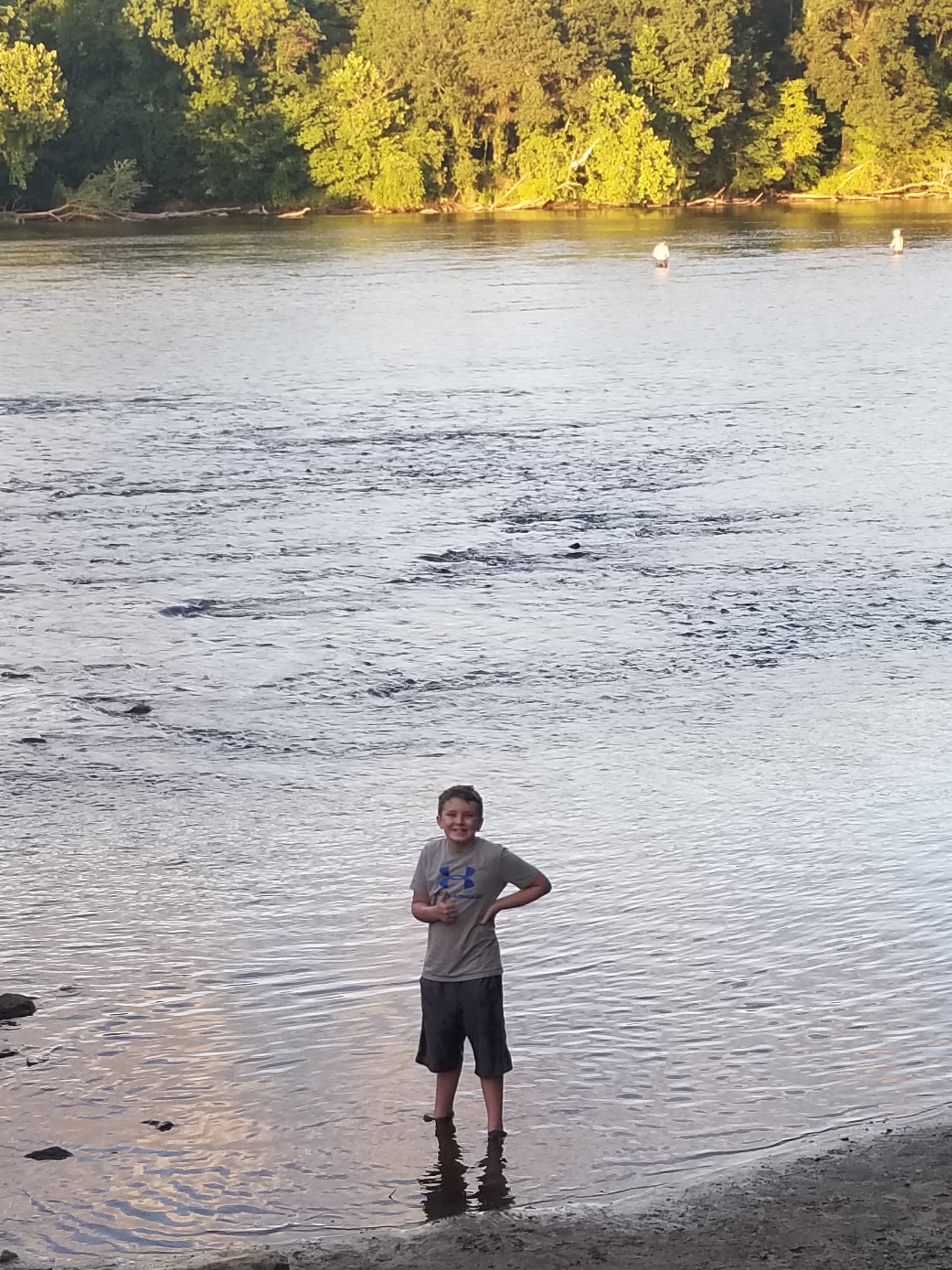 Of course my grandson was immediately inspired to dip his own toes (and more) into the river. Me, being a “papa” was only to happy to obligate.